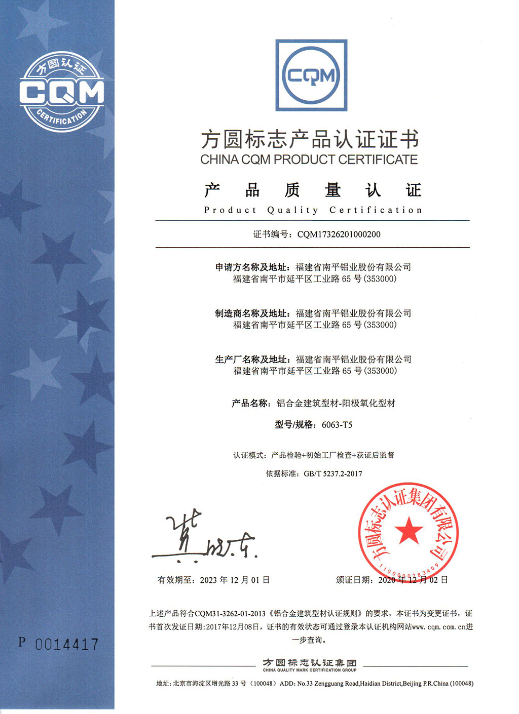 陽極氧化型材產(chǎn)品質(zhì)量認證